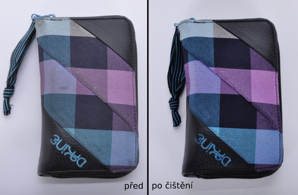 Jediné, podle čeho poznáte, že není zbrusu nová, je její (ne)čistota. Ale i to jsem překvapivě snadno vyřešila. Na obrázku vidíte peněženku po třech letech používání před čištěním a po vyčištění vlhkou houbičkou a jarem. Videonávod naleznete již brzy v sekci Jak na to.
