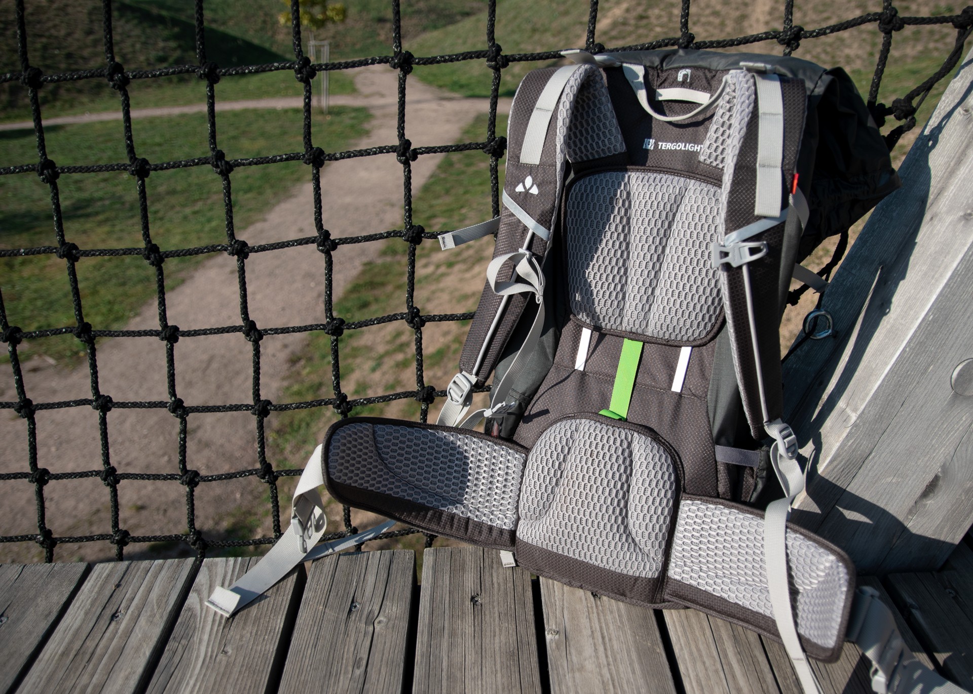 Zádový systém Tergolight mě mile překvapil. Nejsem příliš velký fanoušek integrovaných rámů, tentokrát mi ale odlehčený rám z hliníku všitý v zádové části nijak nepřekážel. Spíš naopak. Batoh díky němu bez problému zvládl unést trekovou výbavu o hmotnosti cca 10 kg a při pohybu ve svažitém terénu se postaral společně s balančními popruhy o stabilitu a rovnoměrné rozložení hmotnosti neseného nákladu na bedra. Zádový systém je posuvný, zvládne ho podle výšky a velikosti zad nastavit úplně každý. Při úpravě jsem nemusela nikde nic přeměřovat, stačilo intuitivně zvolit podle velikost triček, které nosím nejčastěji, a bylo vyřešeno. Batoh má docela širokou škálu velikostí od S až po XL. Ideálně sedne všem, jejichž výška dosahuje 175 cm a méně.