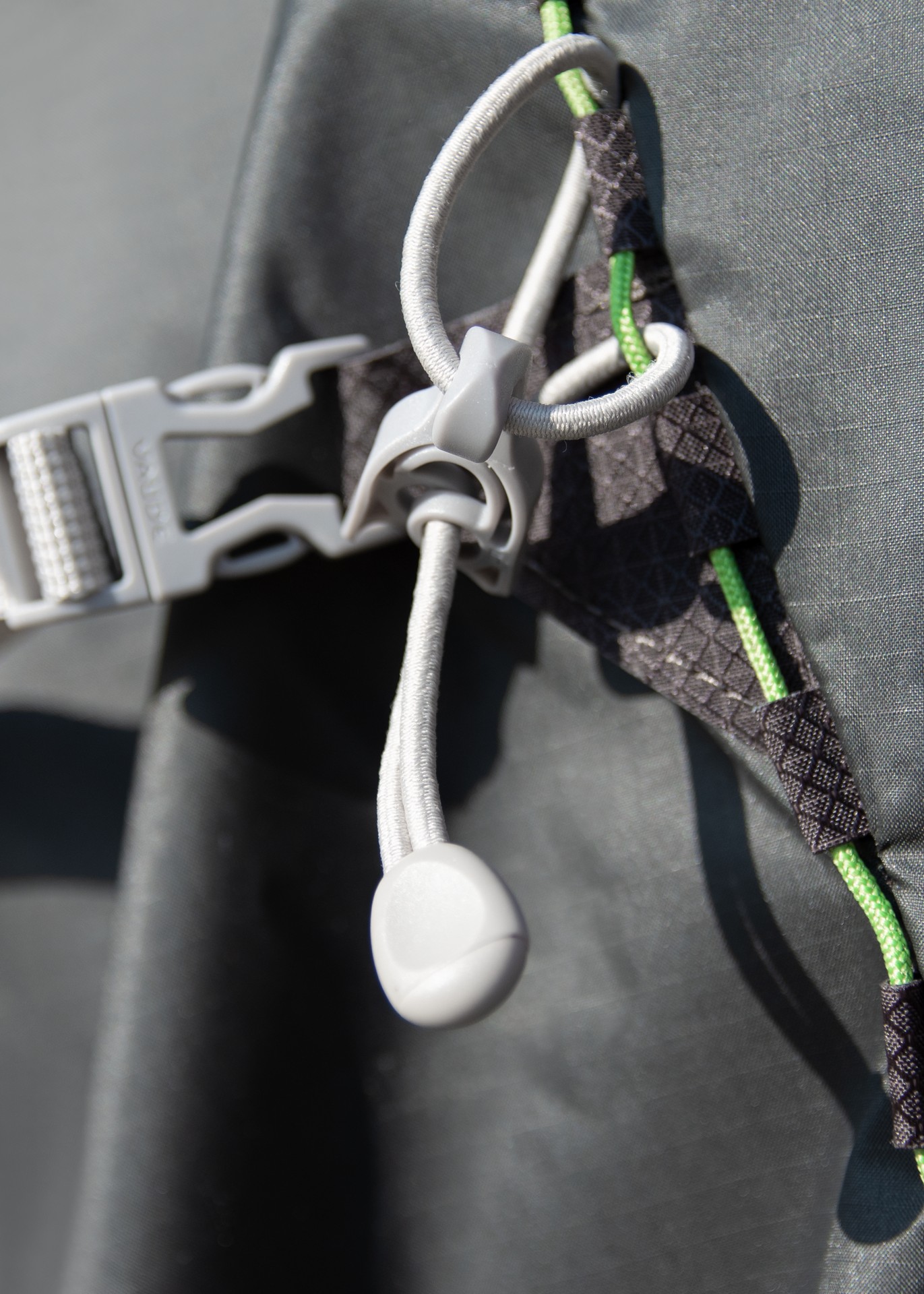 Poutka na uchycení trekových holí jsou u turistického batohu k nezaplacení. Mně se na nich nejvíc líbí, že je možné do nich připnout i jiné vybavení, které nechci nebo zrovna nemůžu nést v ruce. Podobně jako poutka se dají využít i kompresní popruhy po obou stranách batohu. Stačí provázek nebo karabina a zavěsím na ně další výbavu – ešuš, plecháček, boty, pytlík se zásobami nebo další láhev.