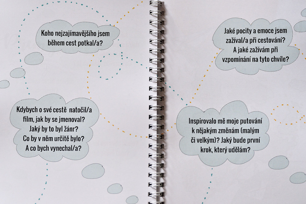 A pak jsem si vytvořila deník pro sebe. Bylo v něm něco navíc, a to otázky. Tehdy poměrně hodně otázek, které vás často přimějí podívat se na věci z jiného úhlu pohledu. Díky nim poznávám i to, čeho bych si normálně nevšimla. Deník jsem pak dala volně ke stažení a osvědčil se. Někomu se otázky líbily moc, někteří prohlašovali, že je nepotřebují, a tak vznikl kompromis. V deníku zůstalo 8 otázek, které mohou se zápisky pomoci a další otázky budou samostatně jako karty – Otázky na cesty, jejichž vydání snad stihneme ještě před hlavní sezonou.