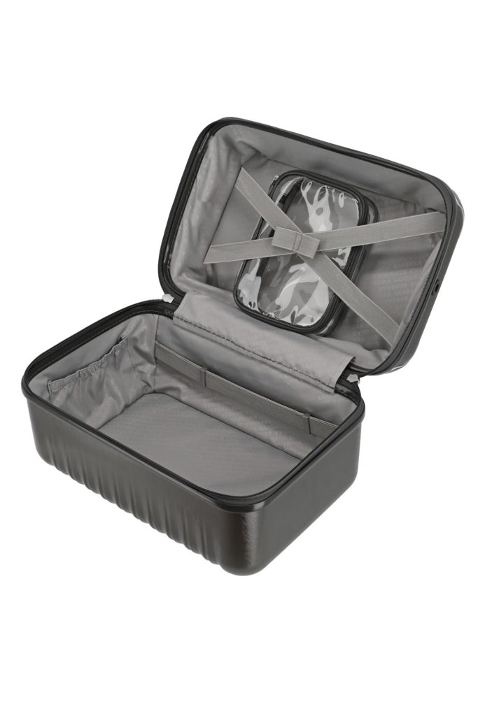 Jeho vnitřní poutka a kapsičky se společně s vyjímatelným pouzdrem na lahvičky s tekutými přípravky postarají o vaši klidnou mysl i bezpečí vaší kosmetické výbavy.